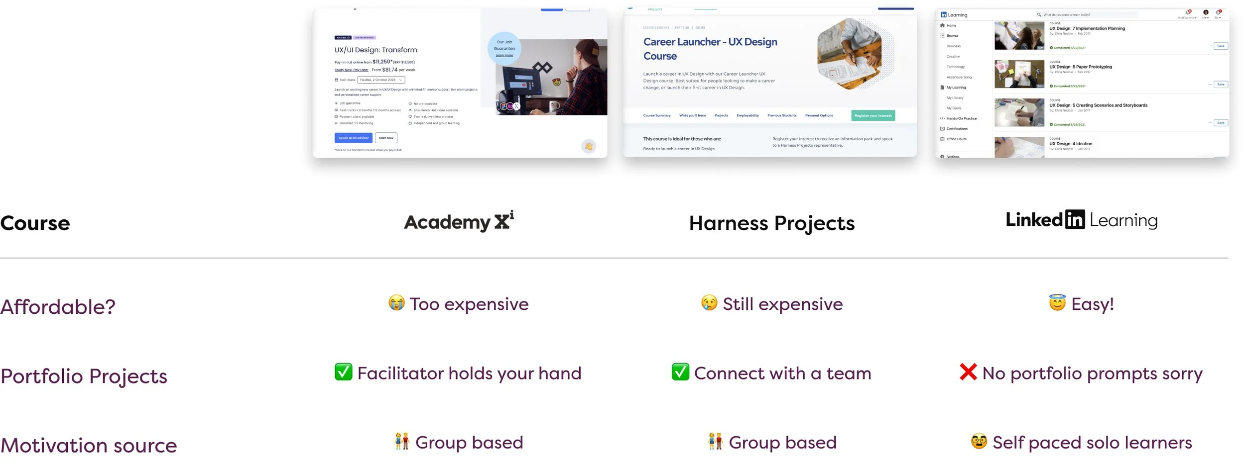 I analysed the 3 most popular UX design online courses - looking both at the learners experience and comparing options to find patterns.