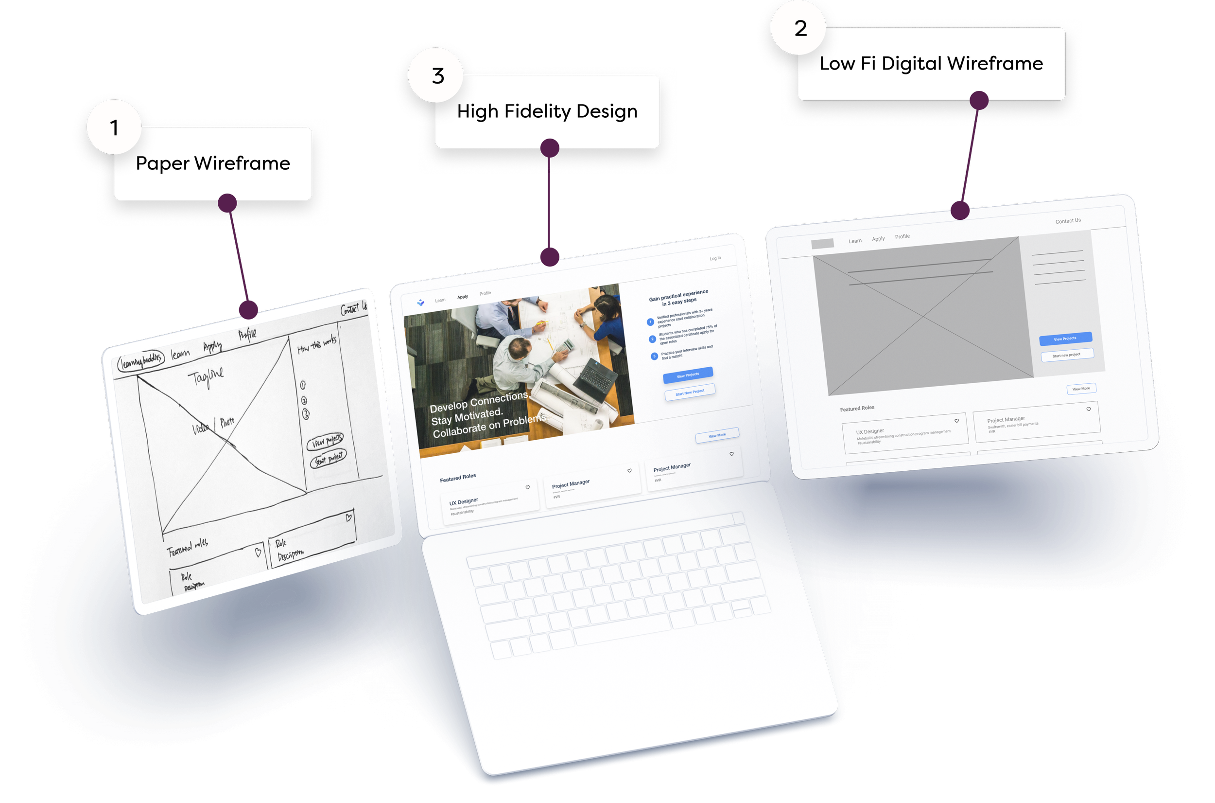I created paper wireframes, digitised them to test my concepts and confirm the functionality, before applying colour and styling to create high fidelity designs.