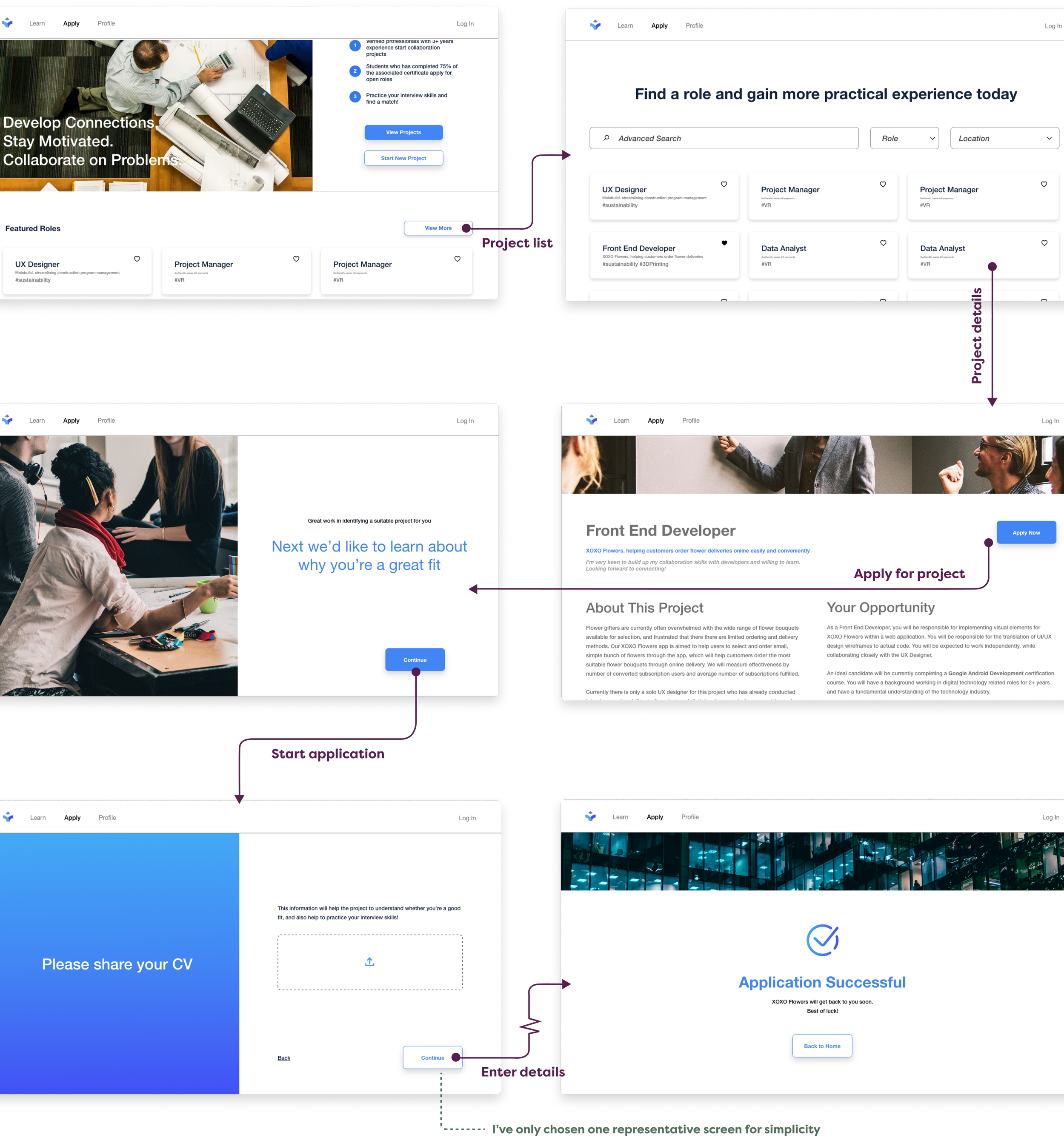 66% of users (2 out of 3) were unsure about what to do on the home page for the featured roles. They quickly understood that the featured roles are just a subset of all the available roles, but they found it hard to understand the tags on the cards.