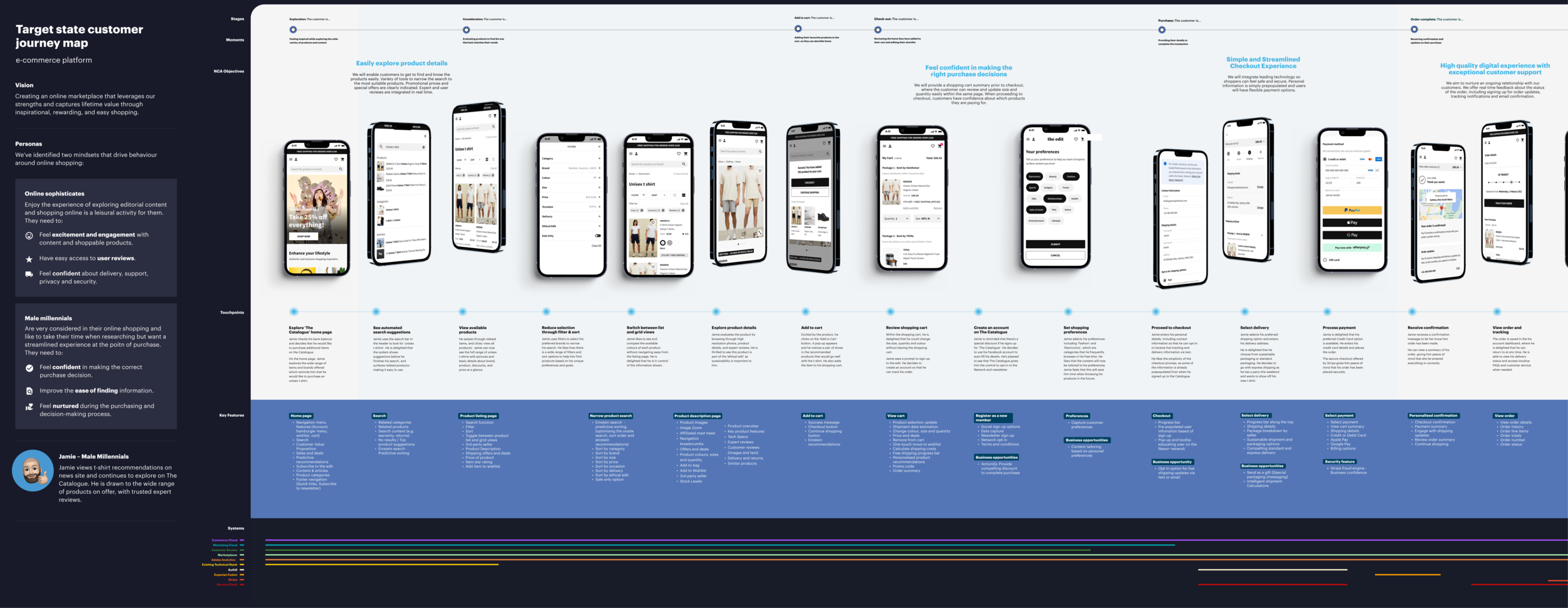 I analysed the 14 eCommerce and content sites - looking both at the shopping experience and common interactions to find patterns.