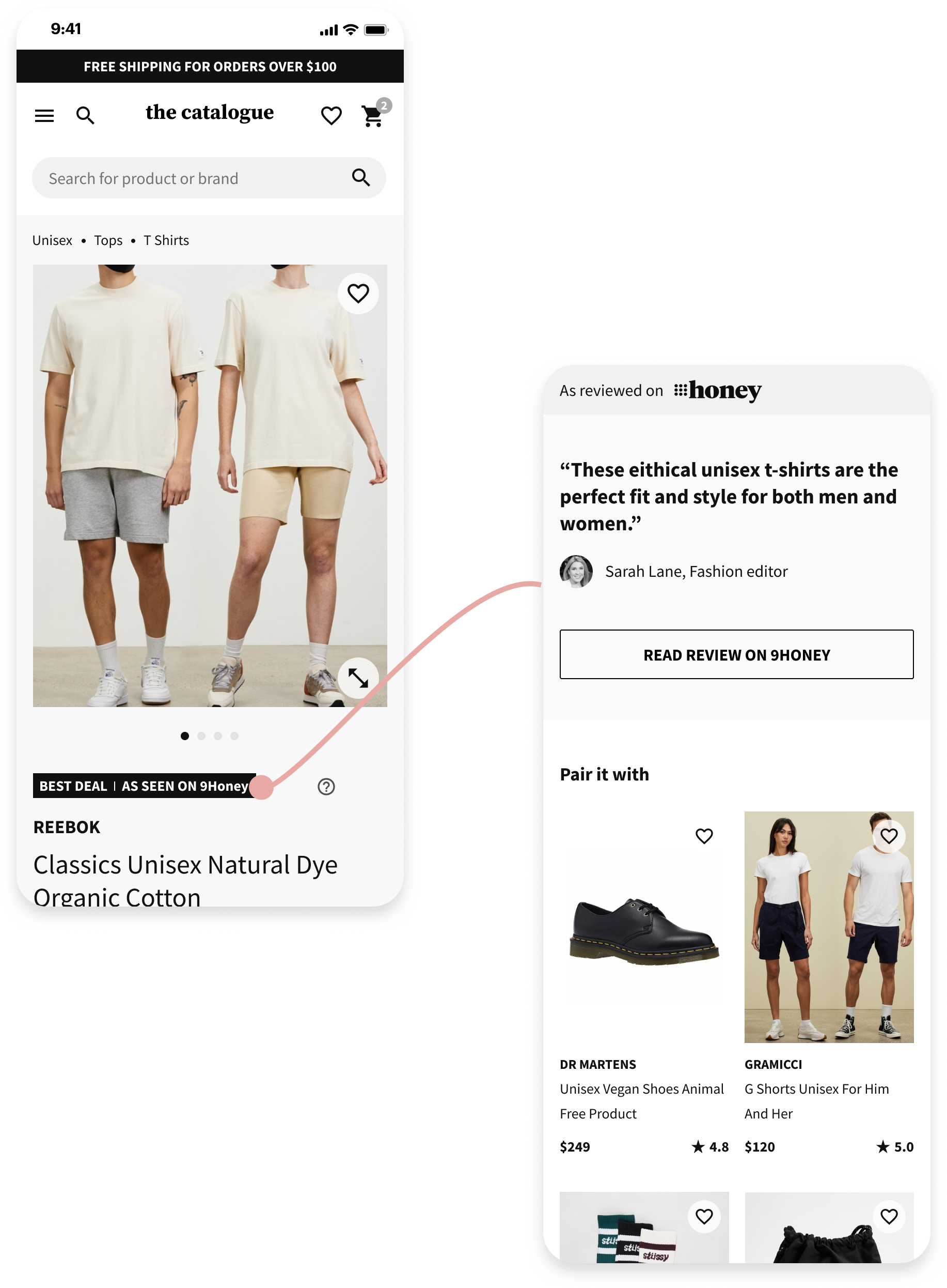 Within the product page. each product has a tag at the top, highlighting the article that it was featured within, and the value for customers (e.g. “Best Deal”). This tested very well, however our initial design didn’t have any interaction attached to the tag - and that didn’t align with customer’s expectation about learning more about the expert review when they clicked on it.